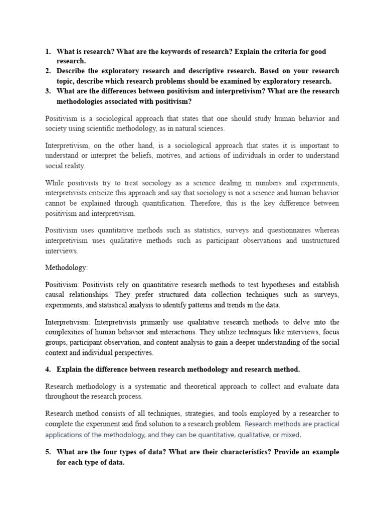 Positivism uses quantitative methods such as statistics, surveys and questionnaires whereas
