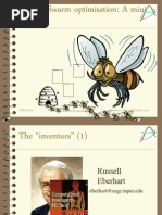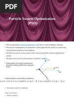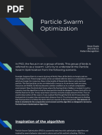 The inspiration for the algorithm is flocks of birds or insects swarming. Each particle is attracted to some degree