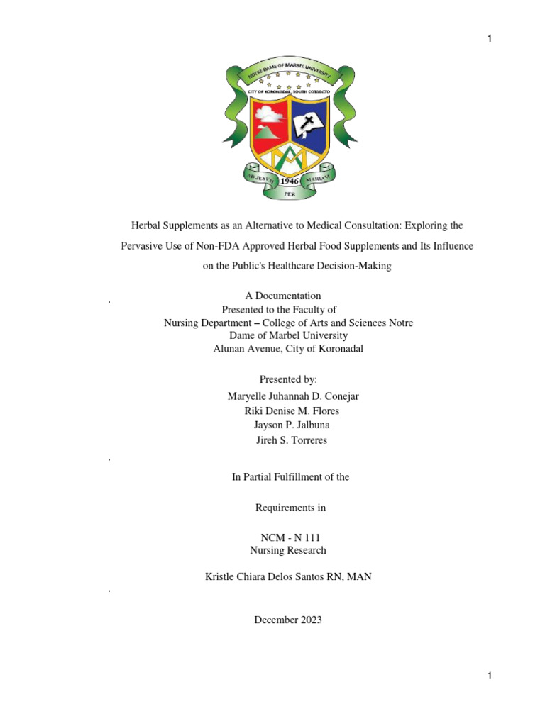 pervasive use of non-FDA approved herbal food supplements in Koronadal City. This