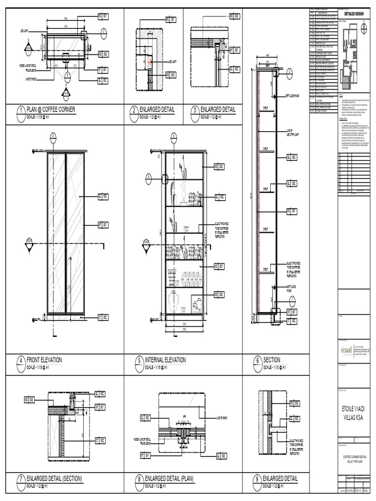 1 PLAN @ COFFEE CORNER 2 ENLARGED DETAIL 3 ENLARGED DETAIL SHELF