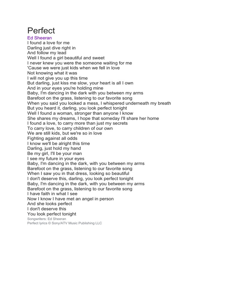 Perfect lyrics © Sony/ATV Music Publishing LLC