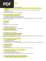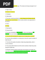 appropriate but should take place only after the nurse-patient relationship is established. 5. Answer D. A compulsion is a repetitive act or impulse helps a person to reduce anxiety unconsciously. An obsessive-compulsive patient does not want to call attention to self and cannot control thoughts. This patients priority is to reduce anxiety, not maintain the safety of the home. 6. Answer A. By acknowledging how the patient feels, this response encourages further expression of thoughts and feelings. Minimizing feelings or offering empty reassurances is not therapeutic or helpful. Deep breathing or preoperative medication would be appropriate only after the patients fears have been expressed and dealt with. 7. Answer C. The nurse must determine whether the restraints have been applied correctly to make sure that patients circulation and respiration are not restricted and that adequate padding has been used. The nurse should document the patients response and status carefully after the restraints are applied. All staff members involved in restraining patients should be aware of hospital policy before using restraints. If p.r.n. medication is ordered, it should be given before the restraints are in place and with the assistance of other team members. The nurse should attend to the patients elimination and hydration needs after the patient is properly restrained. 8. Answer D. Although most phenothiazine produce some effects within minutes to hours, their antipsychotic effects may take several weeks to appear. 9. Answer C. Most states allow restraints to be used if the patient presents a danger to self or others. This danger must be reevaluated every few hours. If the patient is still a danger, restraints can be used until the violent behavior abates. No standing orders for restraints are allowed, and restraints are permitted only until more humane methods, such as sedatives, become more effective. Violent patients who are intoxicated with drugs or alcohol present a problem because they rarely can be sedated until the drug or alcohol is metabolized. In such cases, restraints may be needed for a longer period, but the patient must be closely observed. Obtaining consent is not always possible, especially when the patients violent behavior results from a psychosis, such as paranoid schizophrenia. 10. Answer C. Conditions requiring cautious use of amitriptyline include pregnancy, lactation, suicidal tendencies, cardiovascular disease, and impaired hepatic function. Hiatal hernia, hypernatremia, and hypokalemia do not affect amitriptyline therapy. 11. Answer B. Providing an opportunity for the client to express concern about a new medication and to make a choice about taking it can help the client regain a sense of control over his life. The client has the right to refuse the medication. Instead of simply ordering the client to take it, as in option 1, the nurse should provide the information the client needs to make an informed decision. Attempting to make the client feel guilty, as in option 3, or threatening the client, as option 4, would increase anxiety. 12. Answer A. Decreased libido, retrograde ejaculation, and gynecomastia are all hormonal effects that can occur with antipsychotic medications. Reassure the