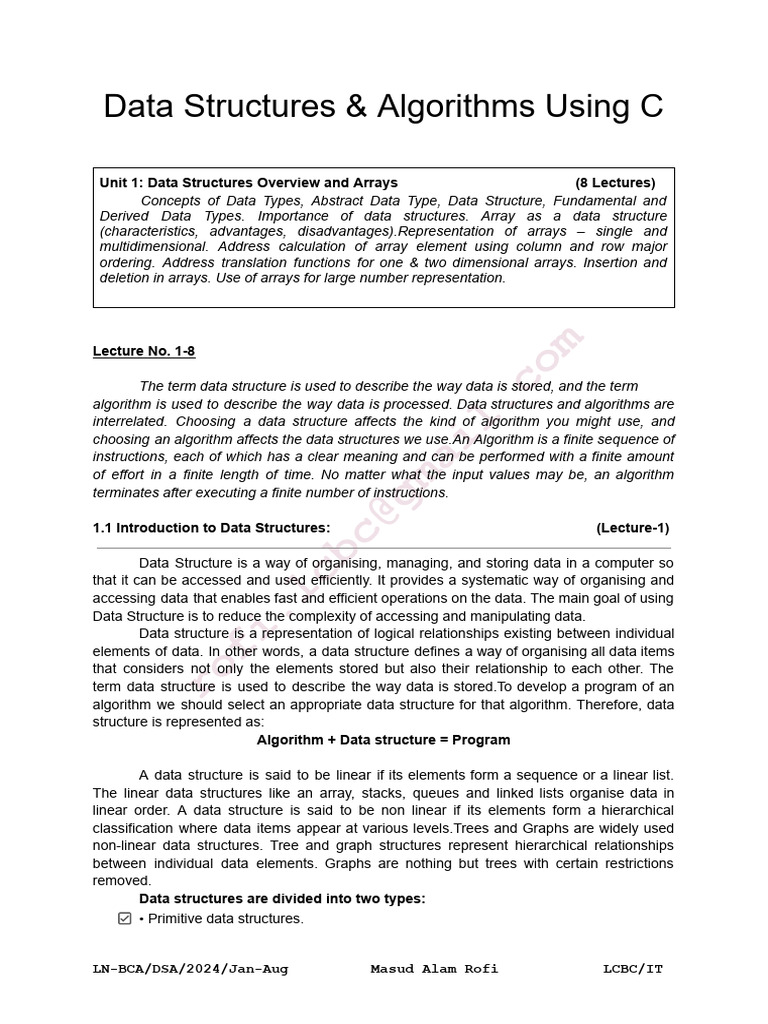 Figure 1.1 shows the classification of data structures.