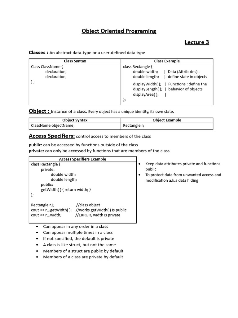 Access Specifiers: control access to members of the class