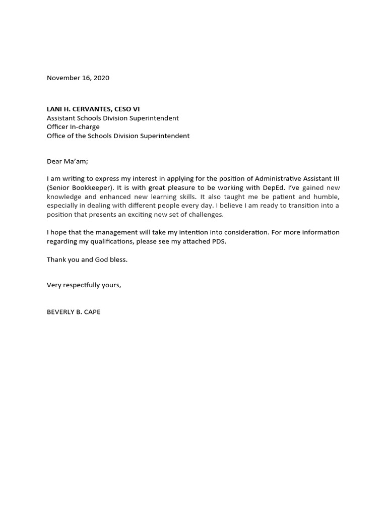 I am writing to express my interest in applying for the position of Administrative Assistant III