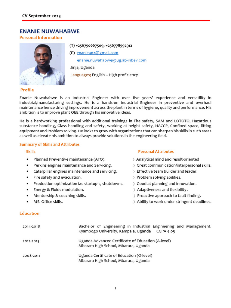 Enanie Nuwahabwe is an Industrial Engineer with over five years’ experience and versatility in