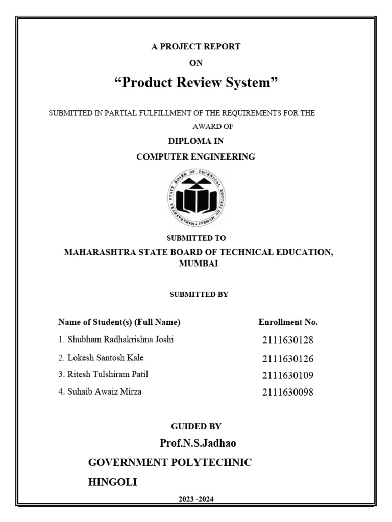This is to Certify that the project report entitled “Product Review System”
