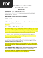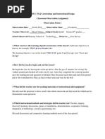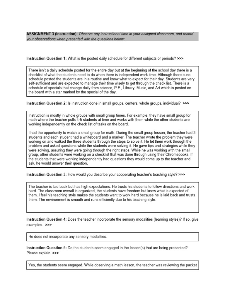 ASSIGNMENT 3 (Instruction): Observe any instructional time in your assigned classroom, and record
