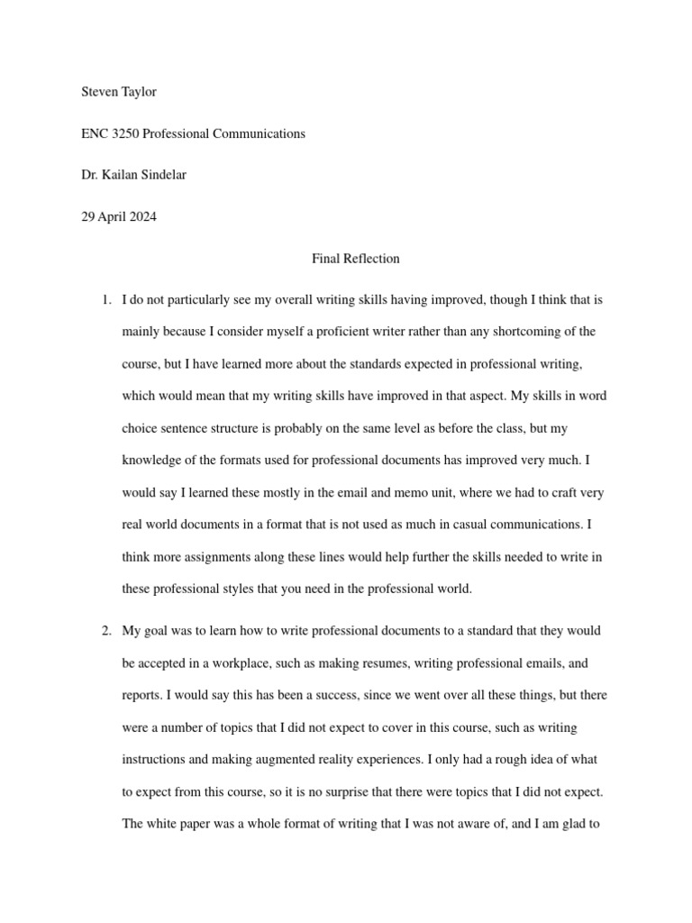 2. My goal was to learn how to write professional documents to a standard that they would