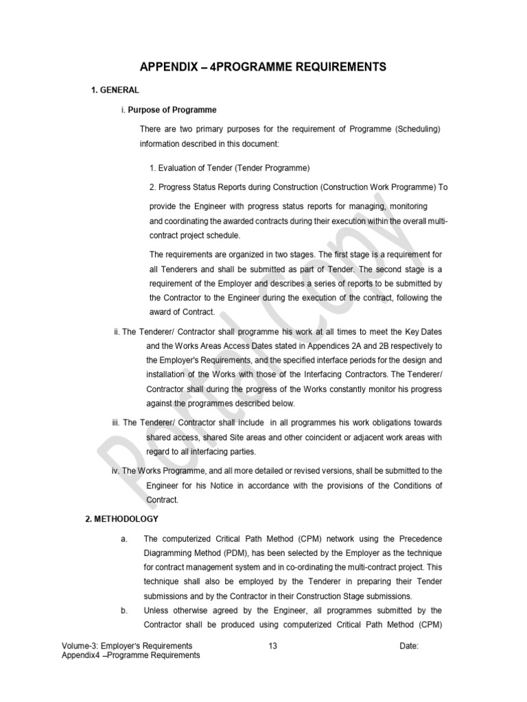 iii. The Tenderer/ Contractor shall include in all programmes his work obligations towards