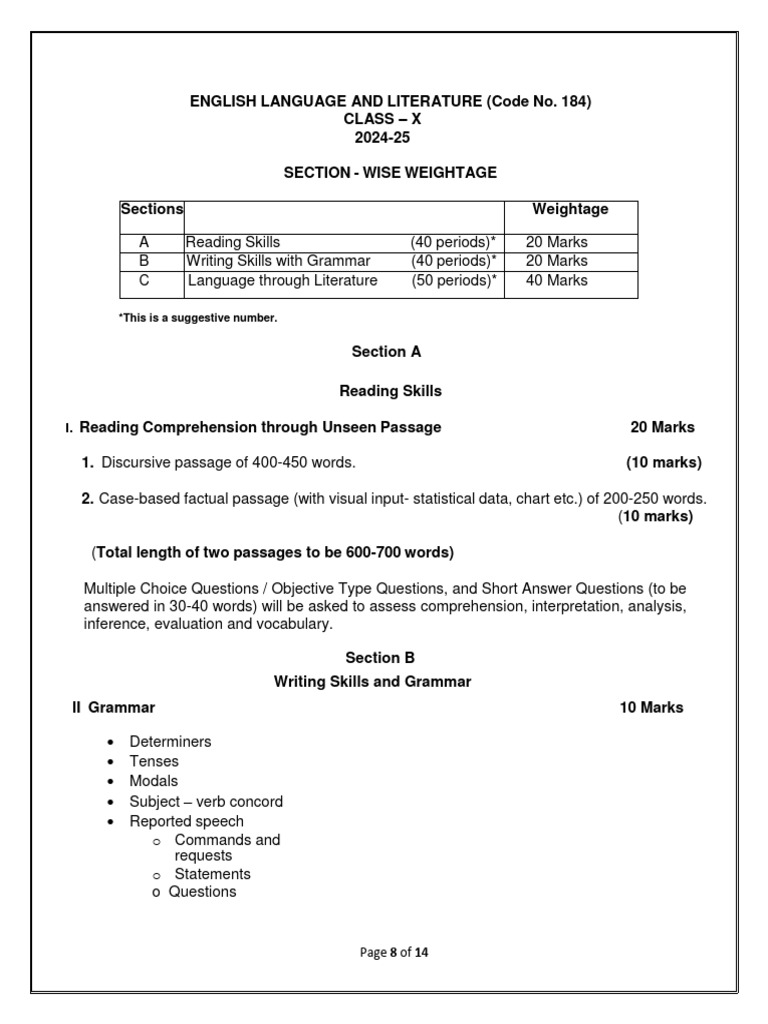 A Reading Skills (40 periods)* 20 Marks