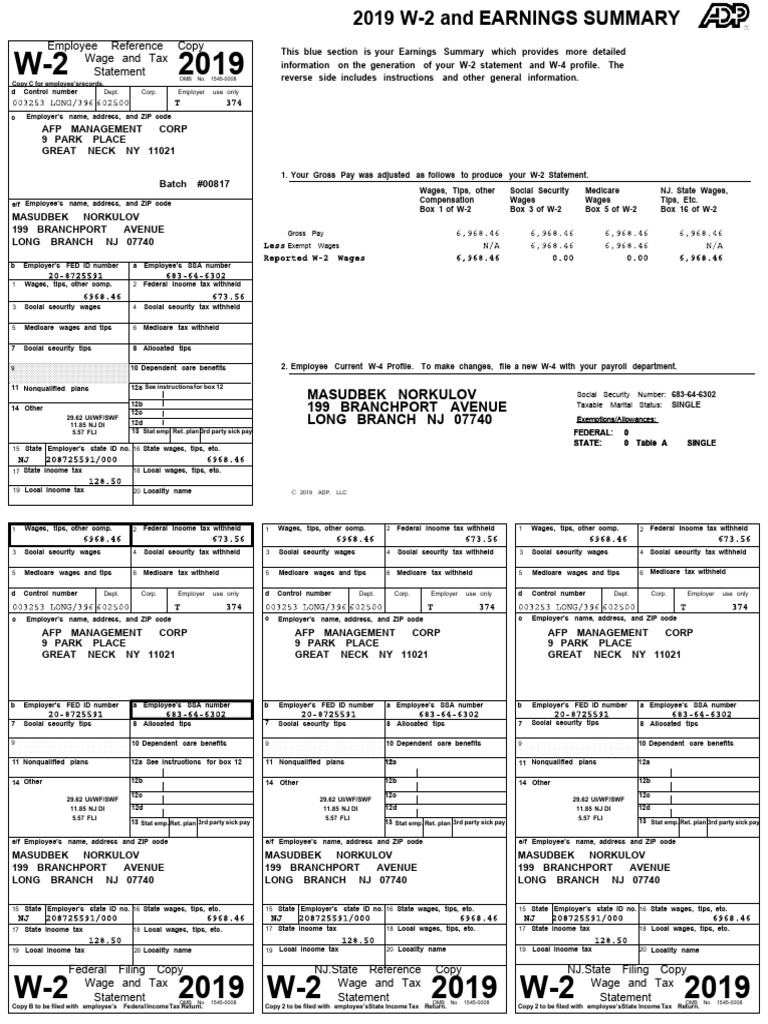 MASUDBEK NORKULOV Social Security Number: 683-64-6302