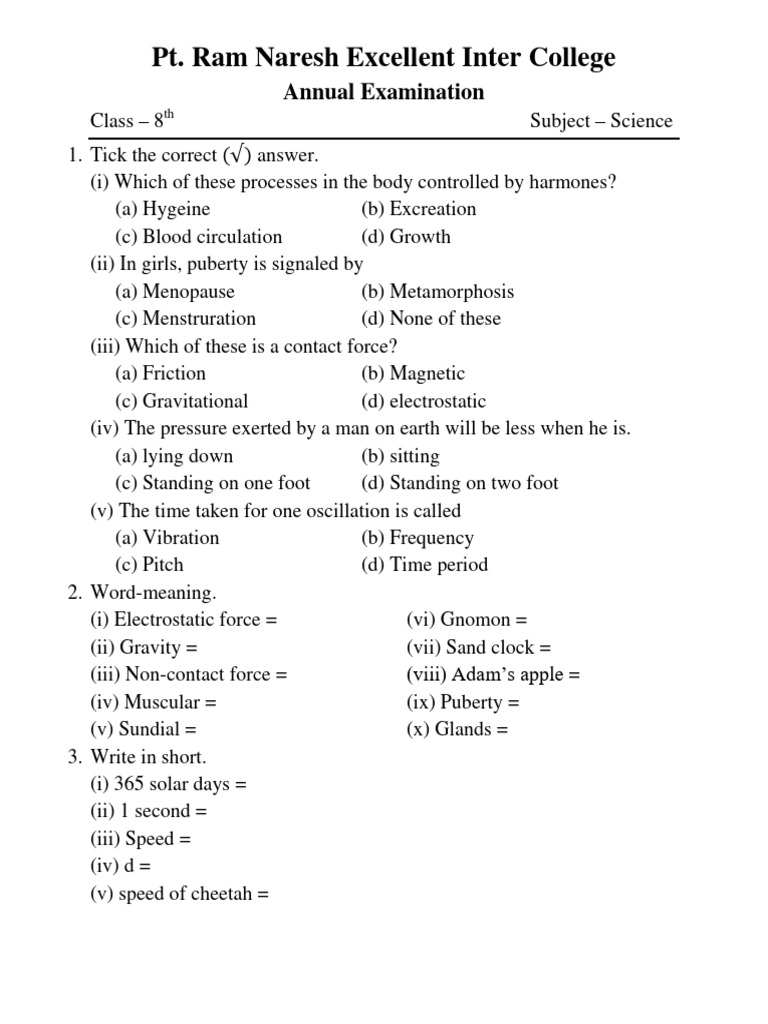 1. fn, x, iz”uksa ds mRrj fy[kksA