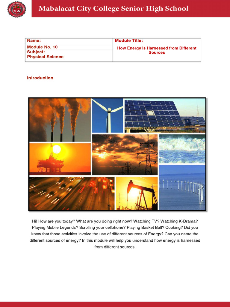 different sources of energy? In this module will help you understand how energy is harnessed