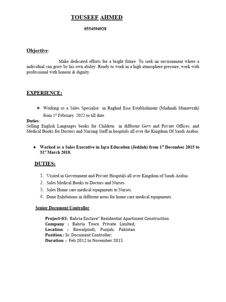 ● Worked as a Sales Executive in Iqra Education (Jeddah) from 1 st December 2015 to