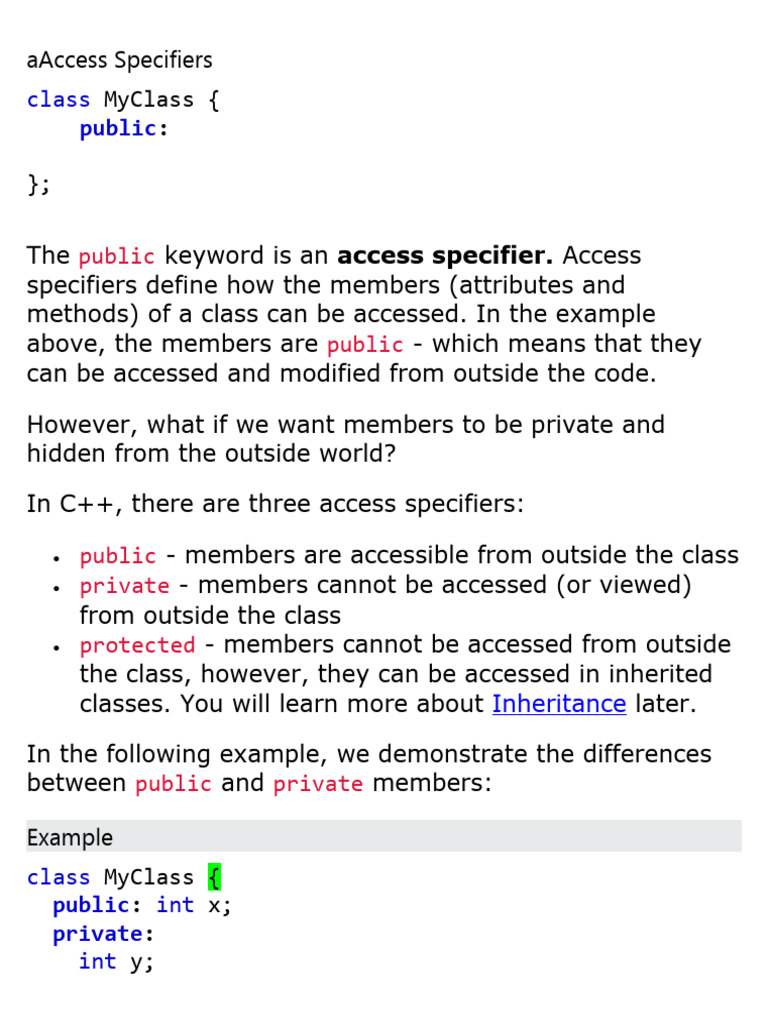 myObj.y = 50; // Not allowed (private)