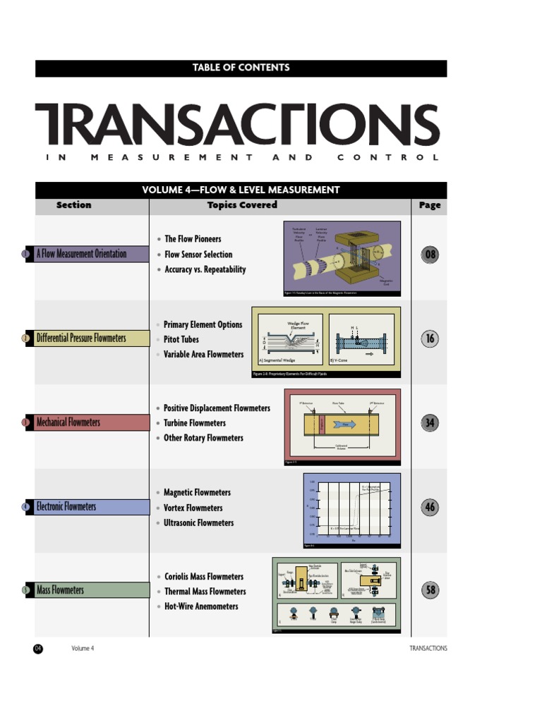 VOLUME 4FLOW & LEVEL MEASUREMENT Topics Covered The Flow Pioneers Flow Sensor Selection Accuracy vs. Repeatability