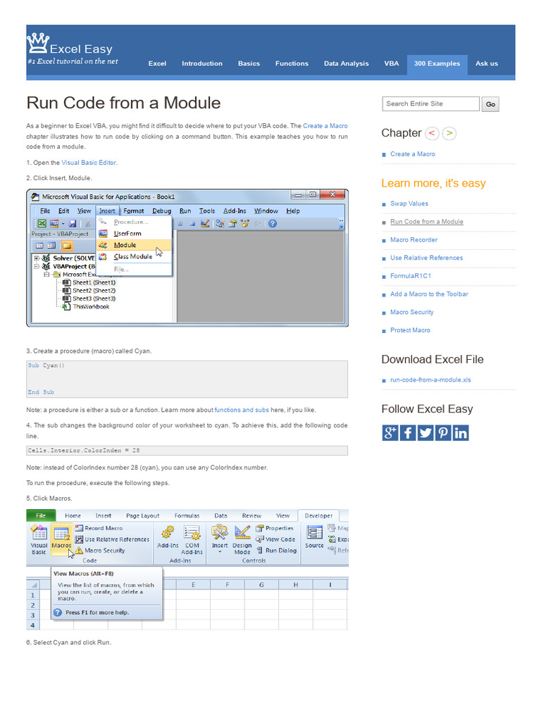 Note: a procedure is either a sub or a function. Learn more about functions and subs here, if you like. Follow Excel Easy