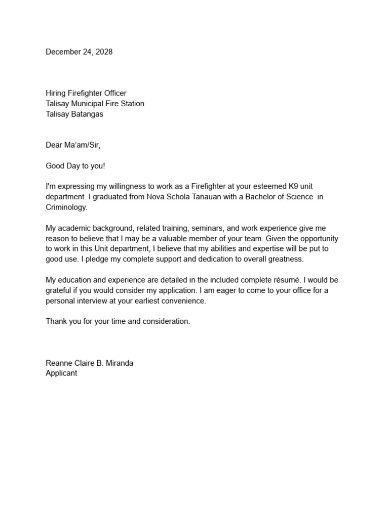 I'm expressing my willingness to work as a Firefighter at your esteemed K9 unit