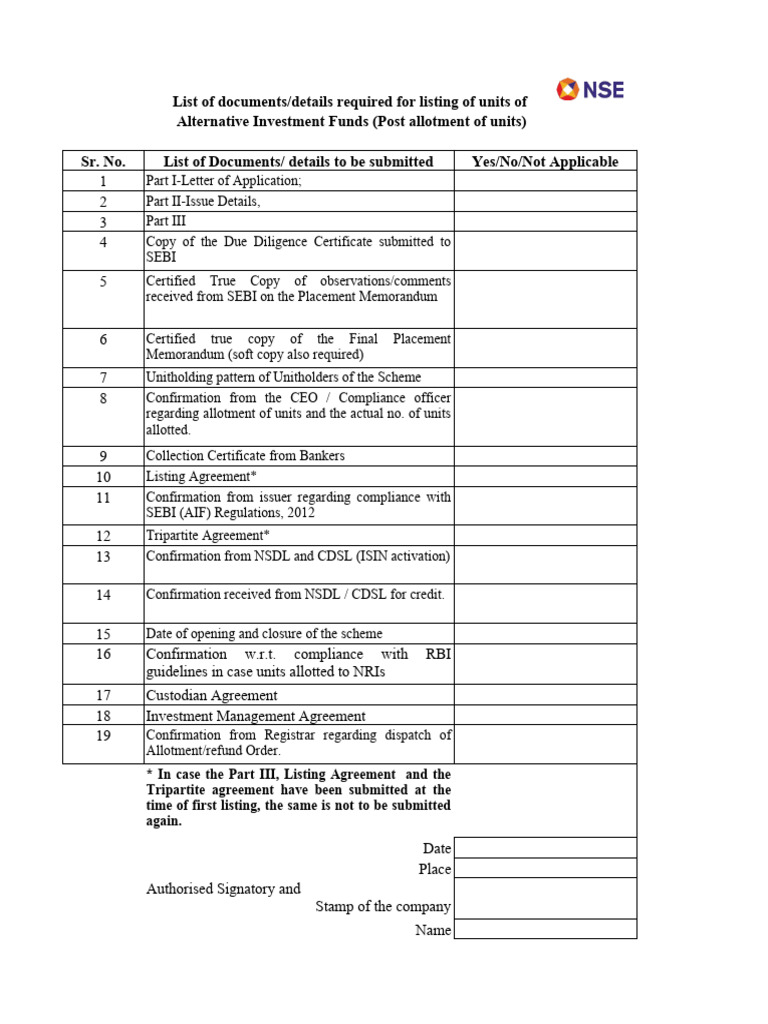List of documents/details required for listing of units of