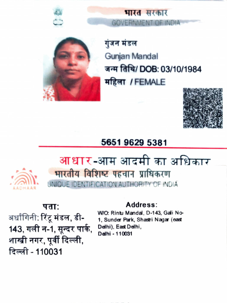 AADHAAR UNIQUE IDENTIFICATION AUTHORITY OF INDIA