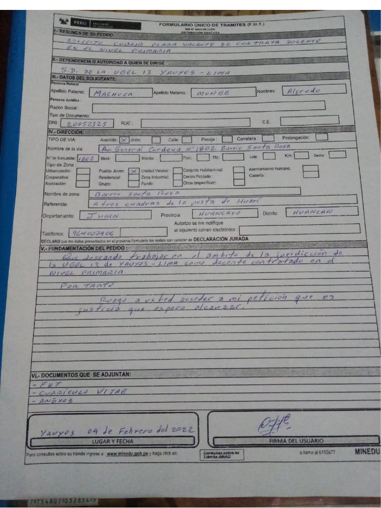 » CE FORMULARIO UNICO DE TRAMITES UT)