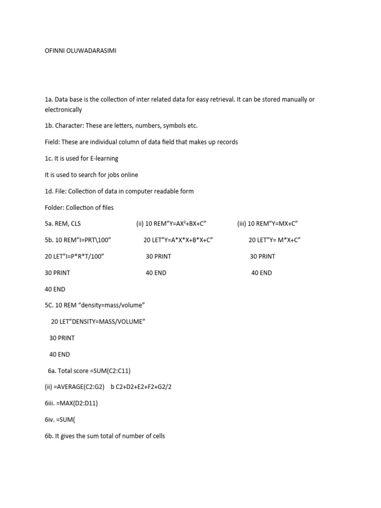 5a. REM, CLS (ii) 10 REM”Y=AX2+BX+C” (iii) 10 REM”Y=MX+C”