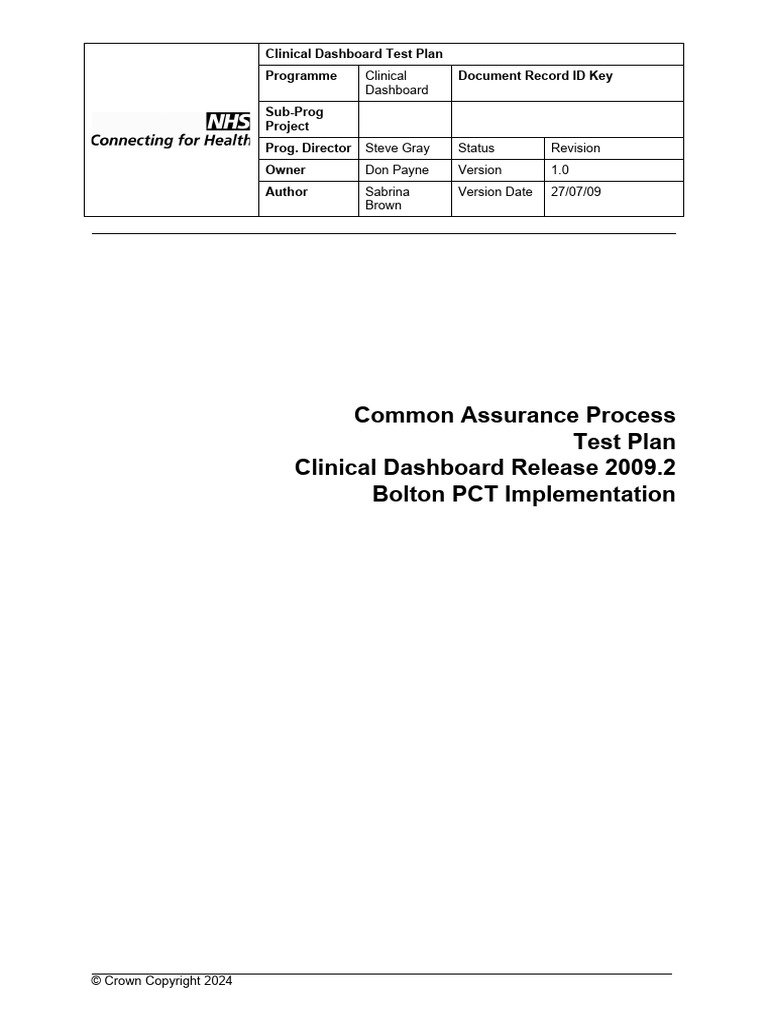 All NHS documents referenced in the template Test Strategy, Test Plan and Test