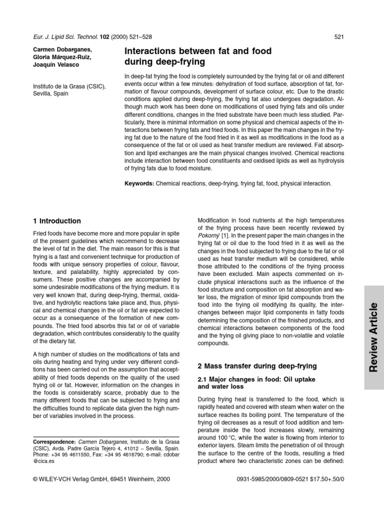 In: Deep Frying: Chemistry, Nutrition and practical applica- [Received: June 8, 2000; accepted: June 26, 2000]