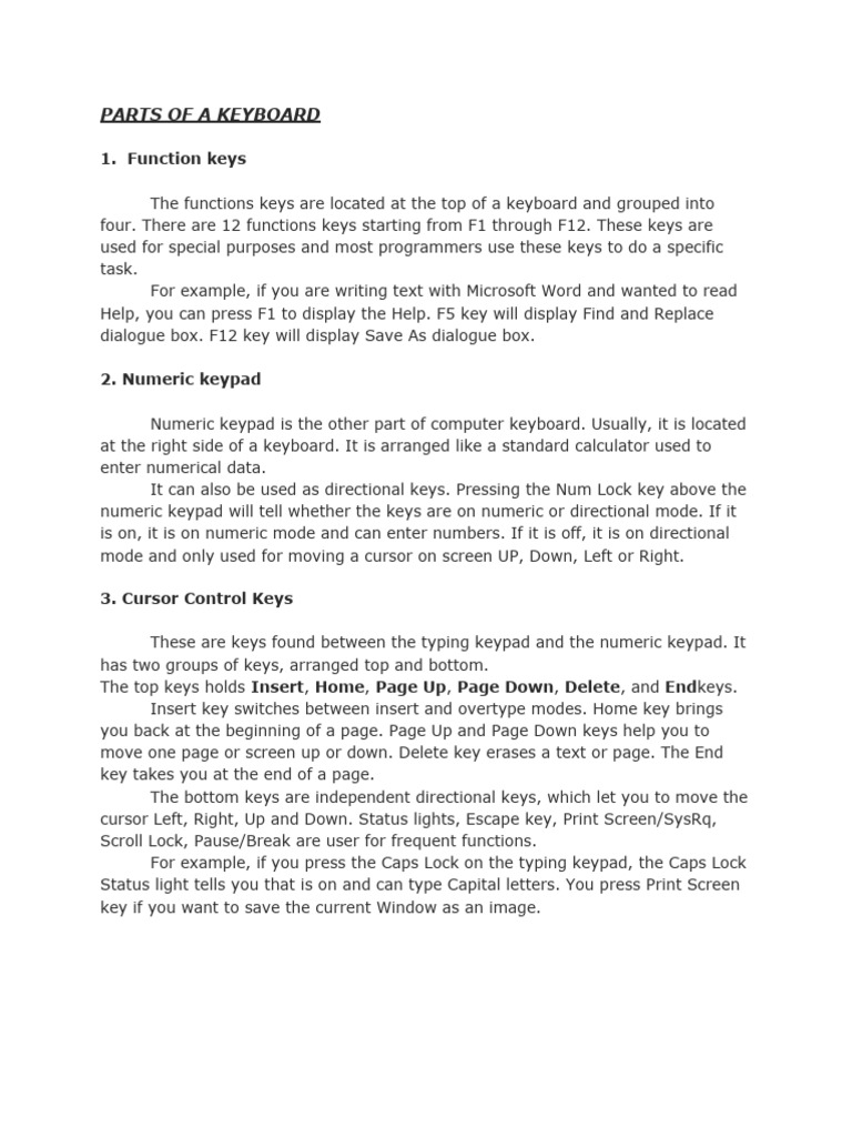 PARTS OF A KEYBOARD
