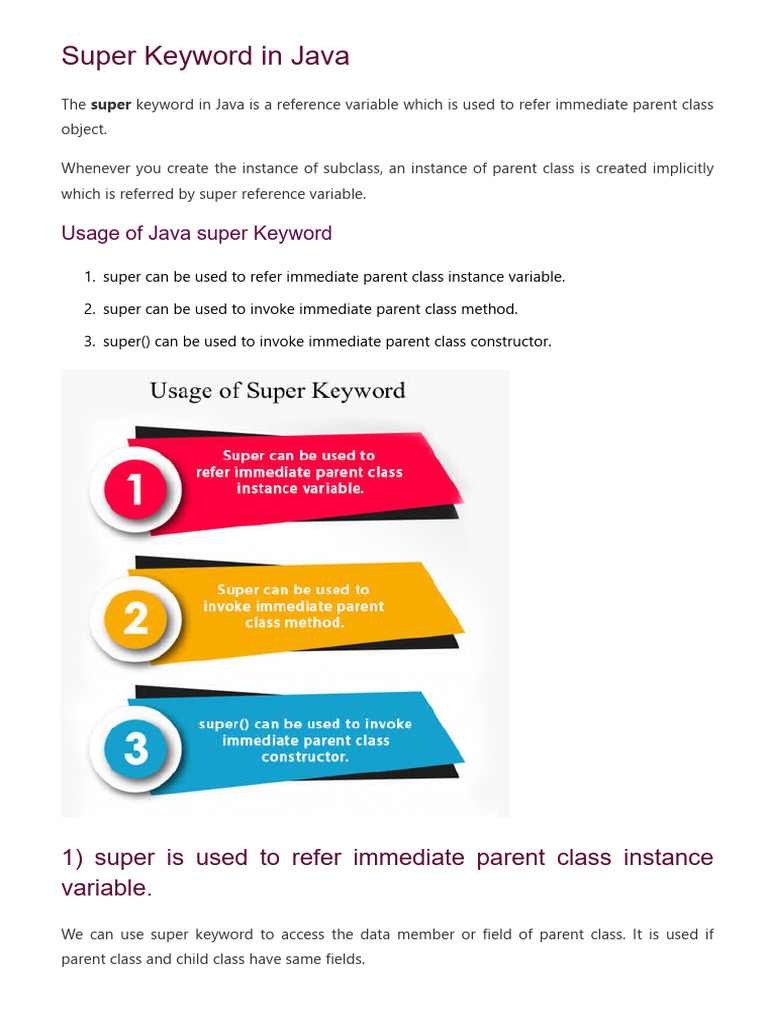 1. super can be used to refer immediate parent class instance variable.