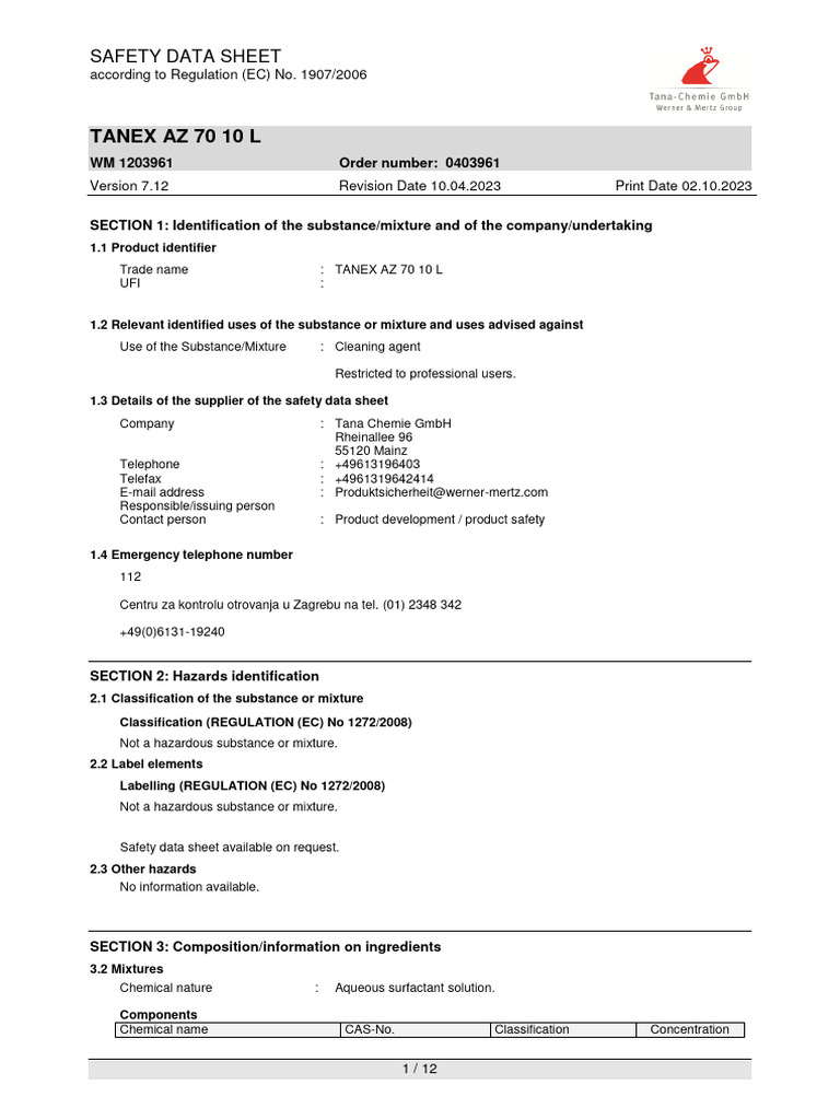 Version 7.12 Revision Date 10.04.2023 Print Date 02.10.2023