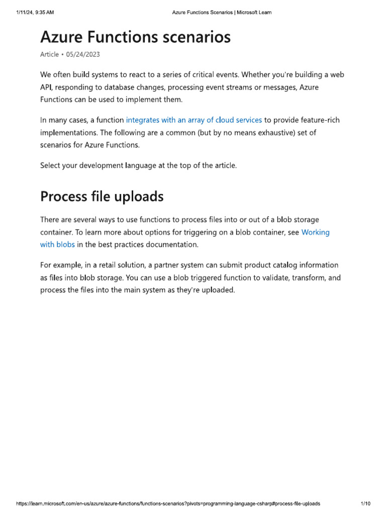 hntps:leam mierosof. conver-us/azurefazure-unctions/tunctions-scenaviospivets=programming-language-csharppracess-fle-uploads ato‘11124, 9:35 AM ‘Azure Functions Scenarios | Microsoft Leam