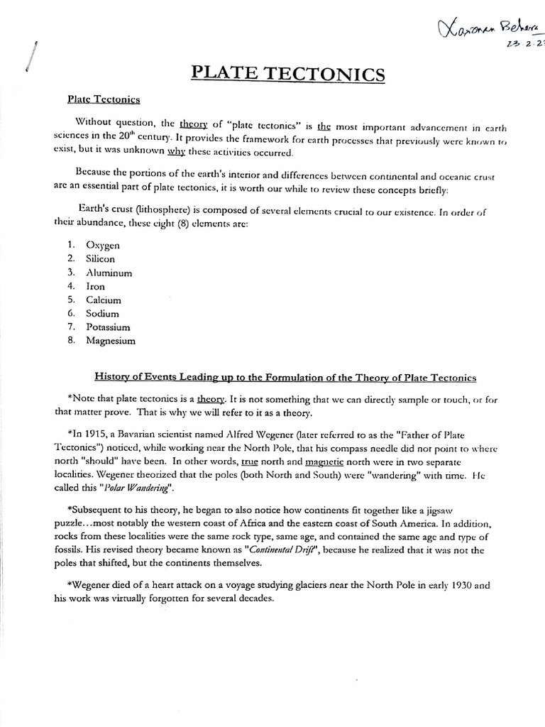 THE SHORT NOTE OF PLATE TECTONIC (Sociology) 1ST UNIT OF 1ST YEAR