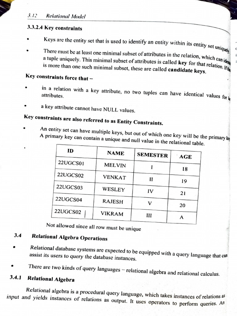 3.4.1 Relational Algebra