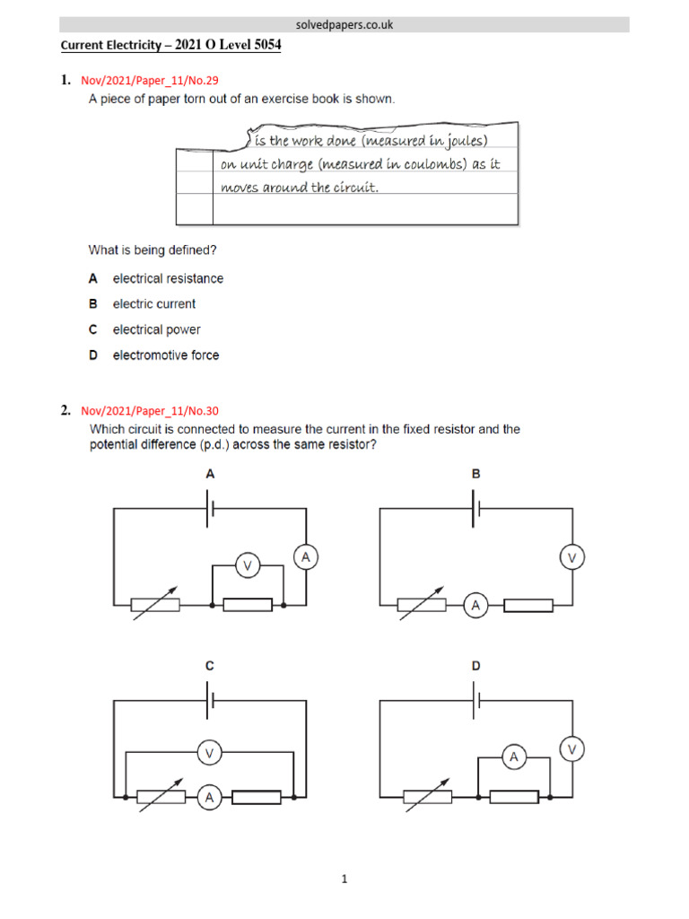 Current Electricity – 2021 O Level 5054