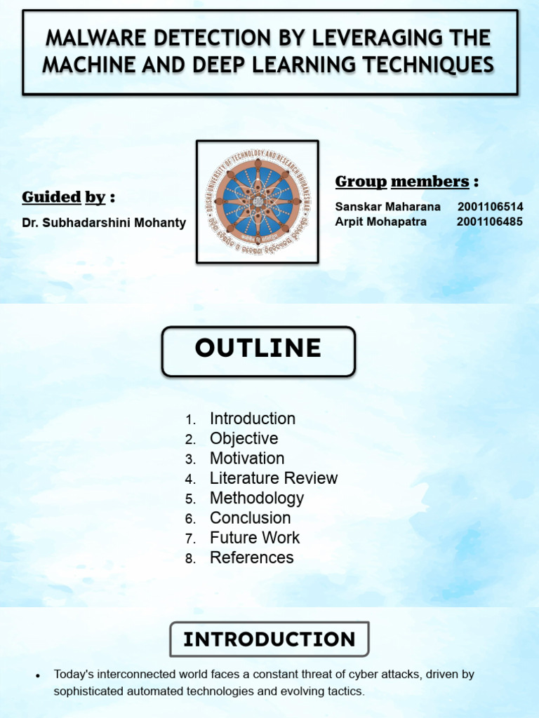 ● Various machine learning algorithms will be employed to address the malware detection problem.