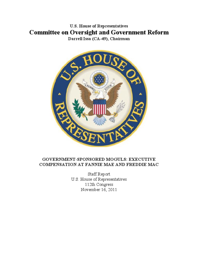 Darrell Issa (CA-49), Chairman GOVERNMENT-SPONSORED MOGULS: EXECUTIVE COMPENSATION AT FANNIE MAE AND FREDDIE MAC