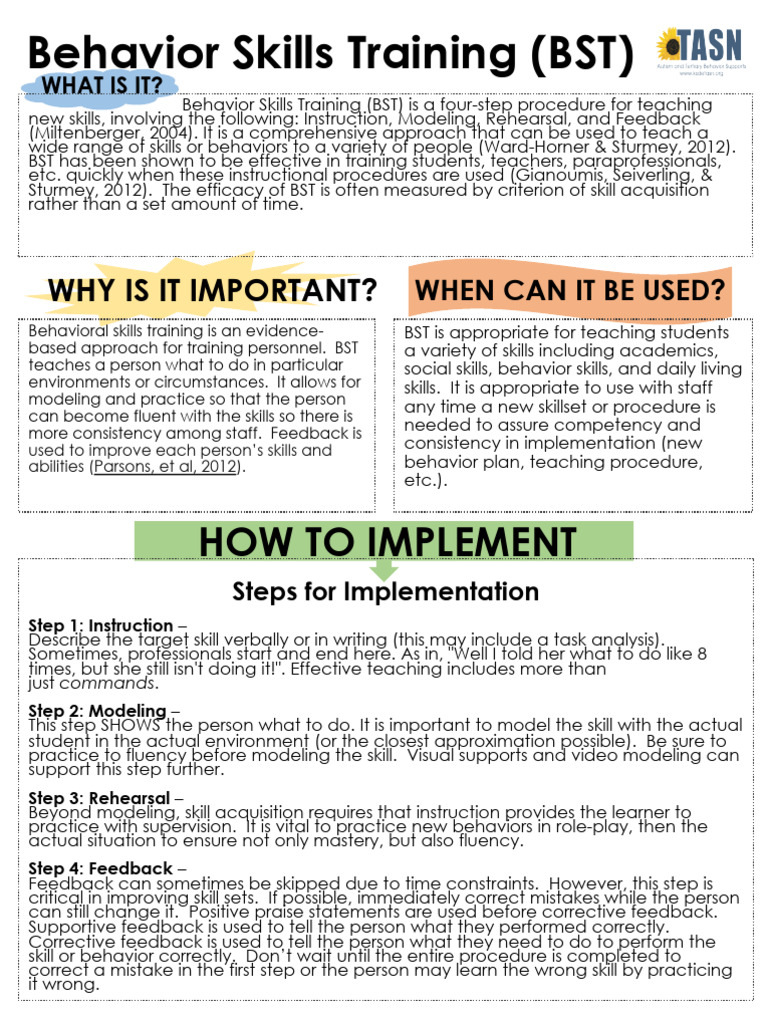 Behavioral skills training is an evidence- BST is appropriate for teaching students