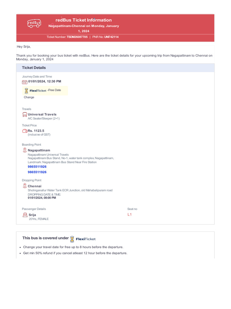 redBus Ticket Information