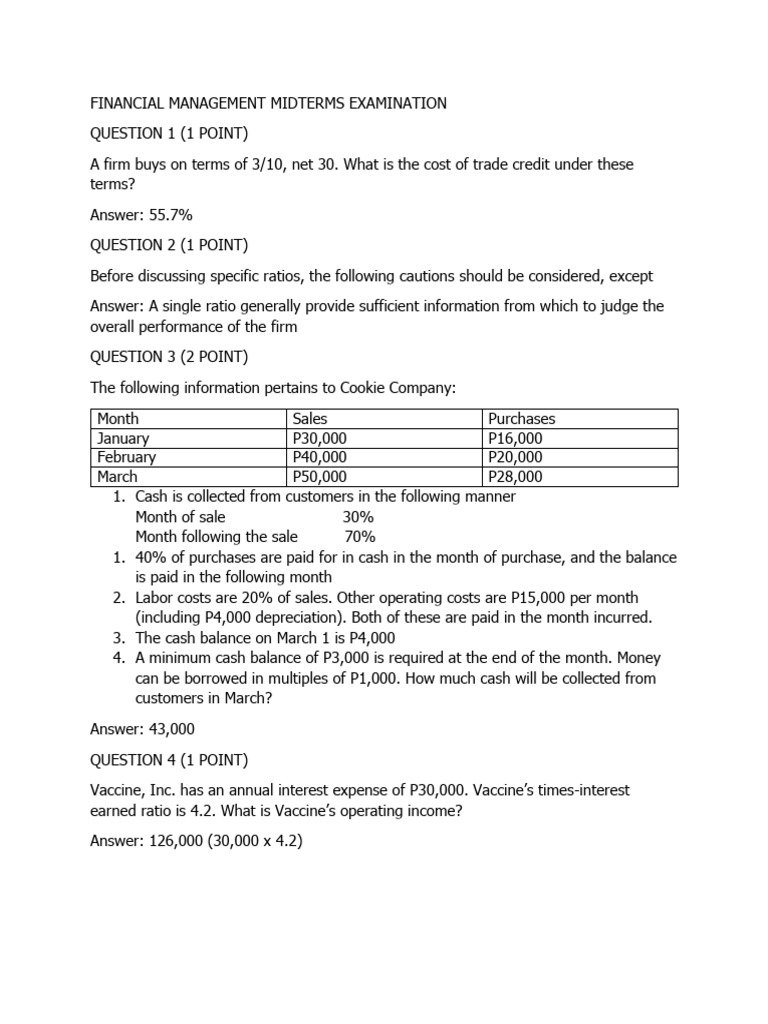 FINANCIAL MANAGEMENT MIDTERMS EXAMINATION