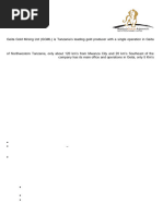 geological features and presence of gold veins continuity. Also we will collect the sample