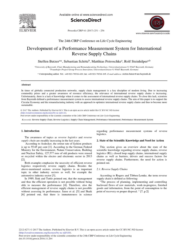from Bayreuth defined a performance measurement system to assess international reverse supply chains. The aim of this paper is to support the
