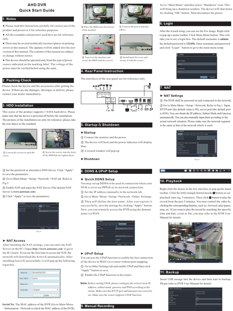 User Name: The username of the DVR. The default username Before recording, please install and format a HDD. Right