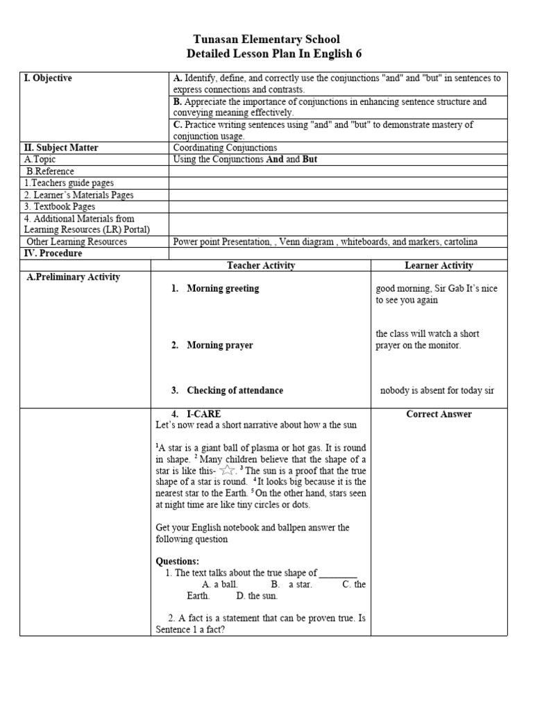 Detailed Lesson Plan In English 6