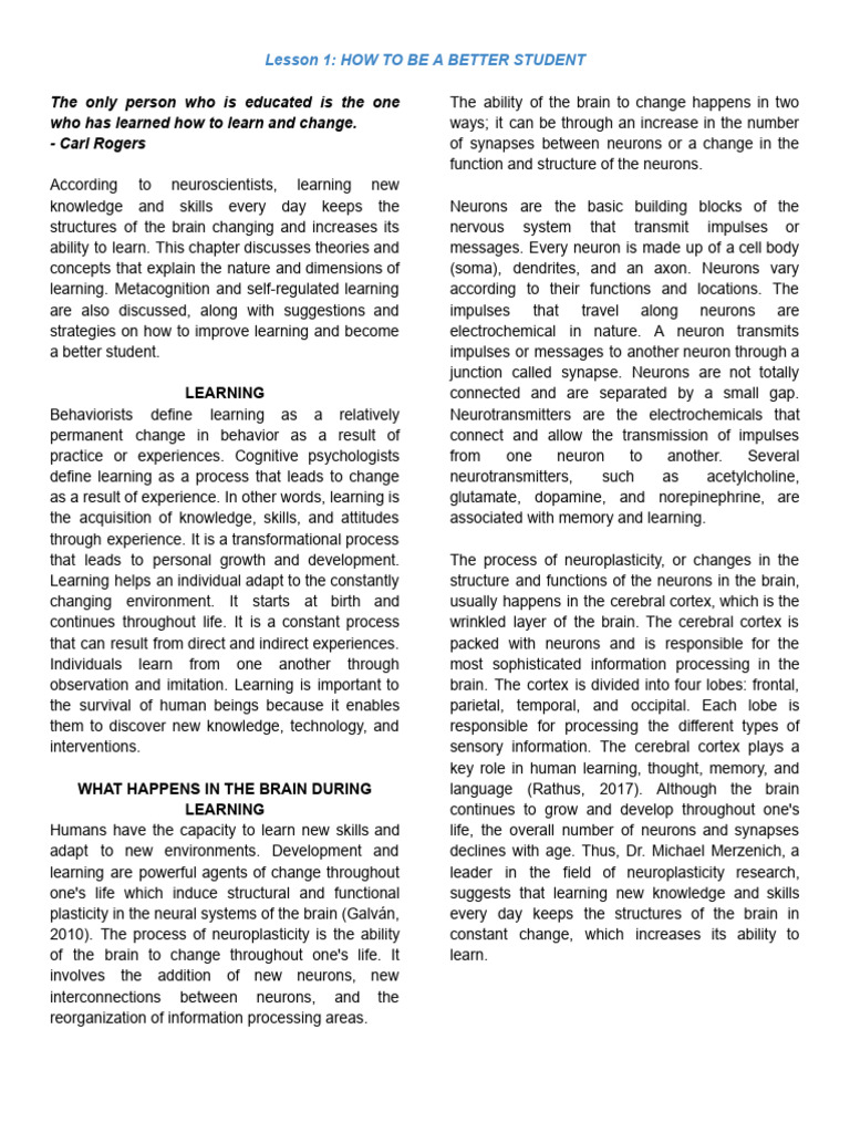 Lesson 1: HOW TO BE A BETTER STUDENT