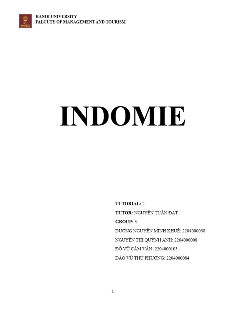 Vietnamese market in 2013. At the moment, Indomie is conveniently available in all Vietnamese