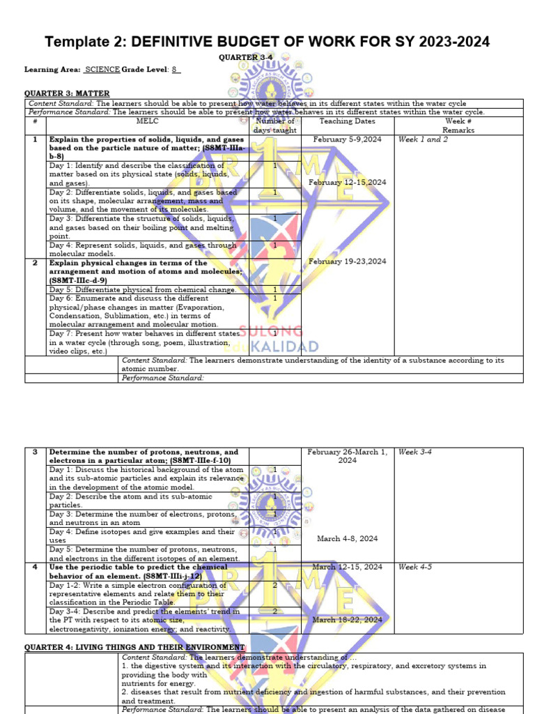 Template 2: DEFINITIVE BUDGET OF WORK FOR SY 2023-2024