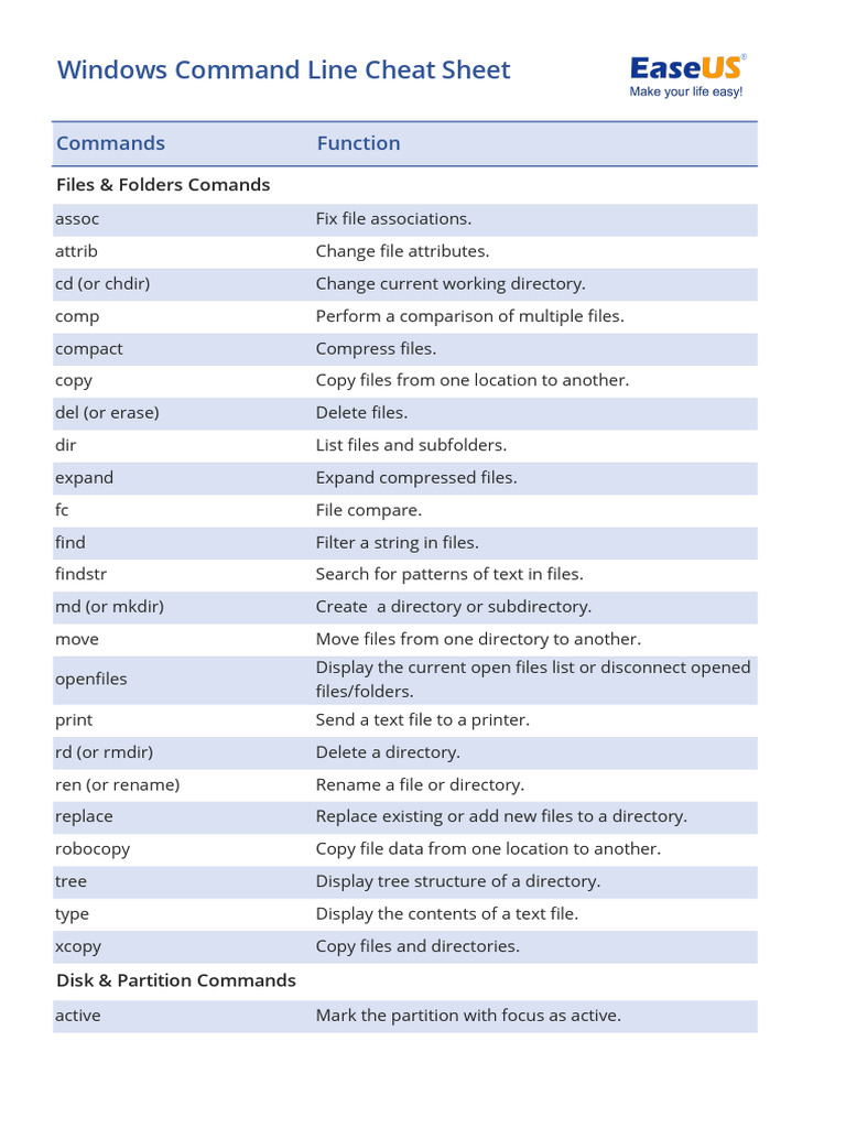 Windows Command Line Cheat Sheet