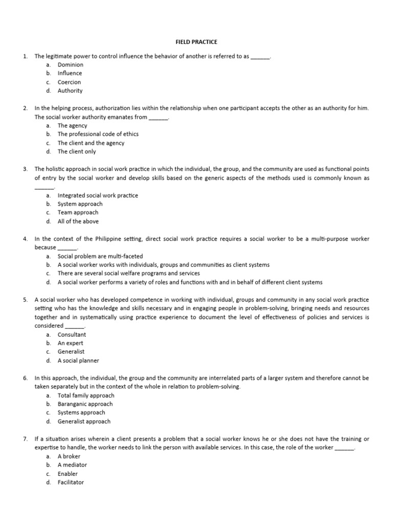 4. In the context of the Philippine setting, direct social work practice requires a social worker to be a multi-purpose worker